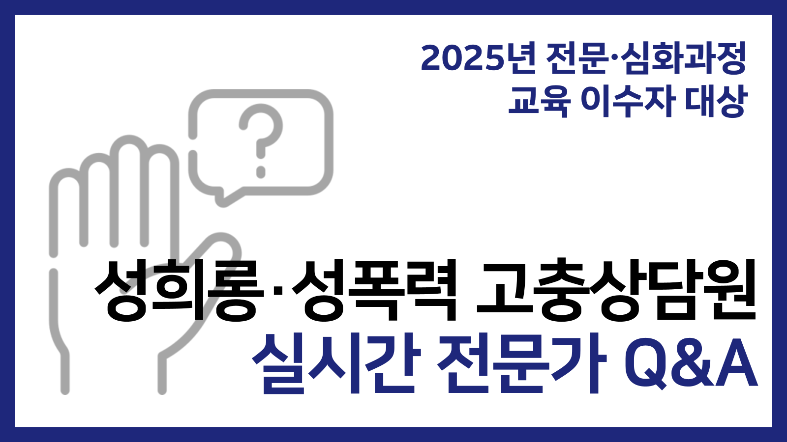 전체보기- 2025년 성희롱·성폭력 고충상담원 교육 실시간 전문가 Q&A 특강 실시 안내 2025.10.21
