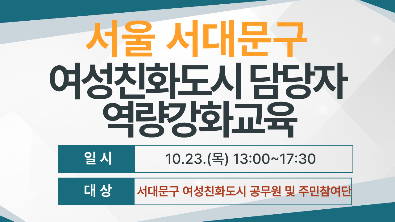 - 교육대상 : 서울 서대문구 여성친화도시 담당 공무원 및 주민참여단